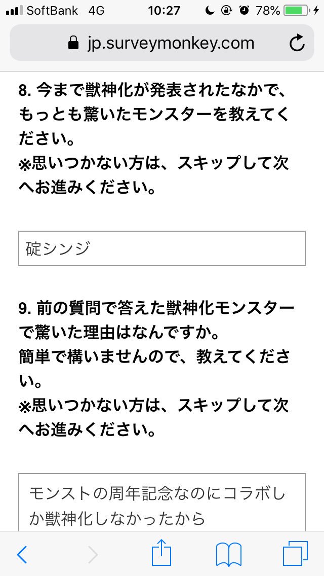 モンストユーザー達よ、今回のアンケートはこんな内容も質問されてるからビッグイベント()での獣神化発表でコラボキャラとかいうわけのわからないことをさせないためにちゃんとアンケート答えてくれよな! pic.twitter.com/fB4ilqVqWz