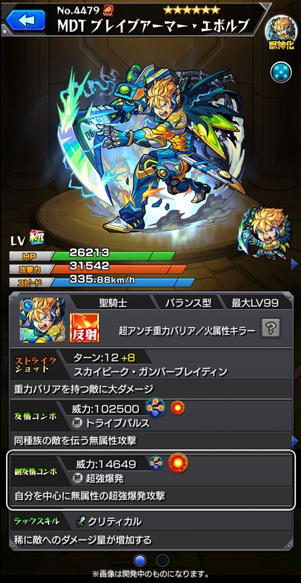 「MDT ブレイブアーマー・エボルブ」!超アンチ重力バリアと火属性キラーに加え、重力バリアを持つ敵に大ダメージを与えるSSを所持!重力バリアをまとった火属性の敵が多く出現するステージで圧倒的な強さを発揮!火属性キラーの効果が発動したトライブパルスと超強爆発の組み合わせもgood! #モンスト pic.twitter.com/7FH4JGOTRF