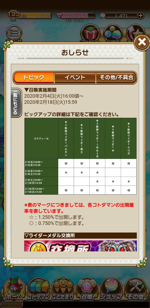 コトダマンのコラボ召喚、ピックアップ期間の方が全ライダーで見ると出る確率上がっている?最初に引いたら損するってこと? #コトダマン