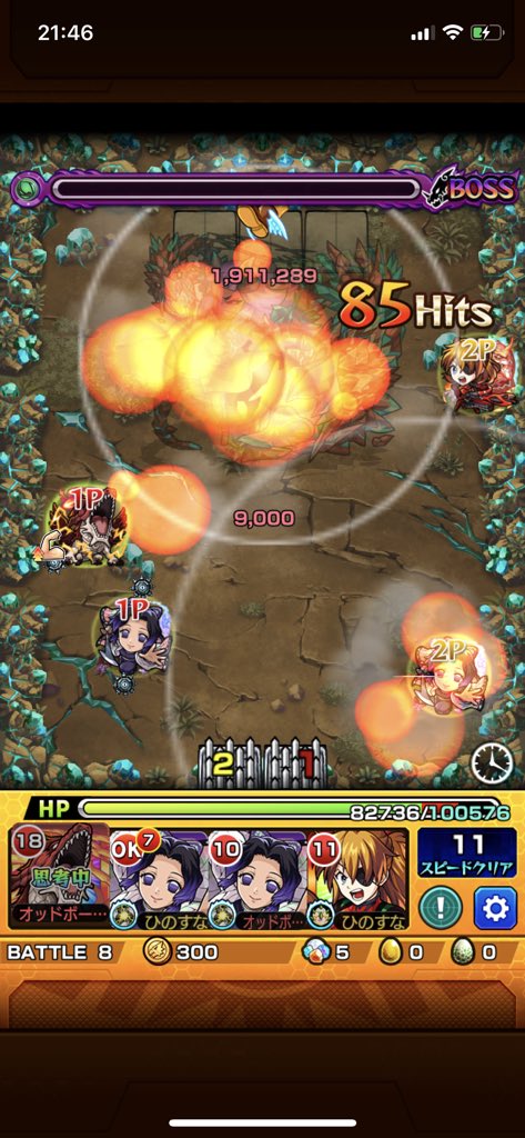 運枠カイン廻さん、しのぶさん×2、フレンド枠珊瑚ネキか自軍アスカちゃんで安定しそうだね☺️ #モンス