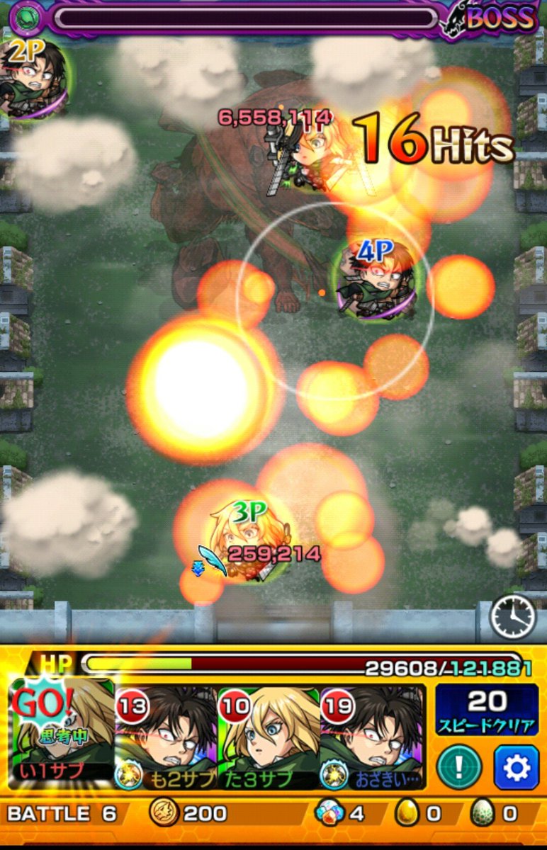 リヴァイ兵長いると超究極ボス1ワンパンらしくて笑ってる
