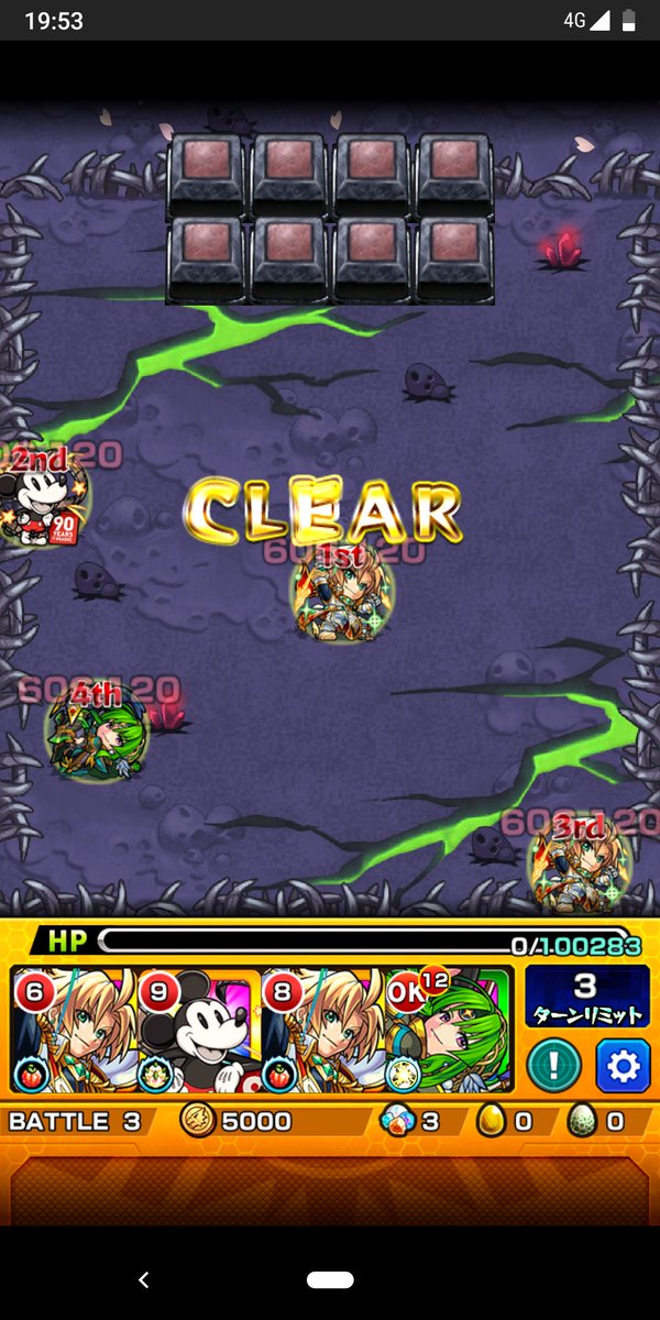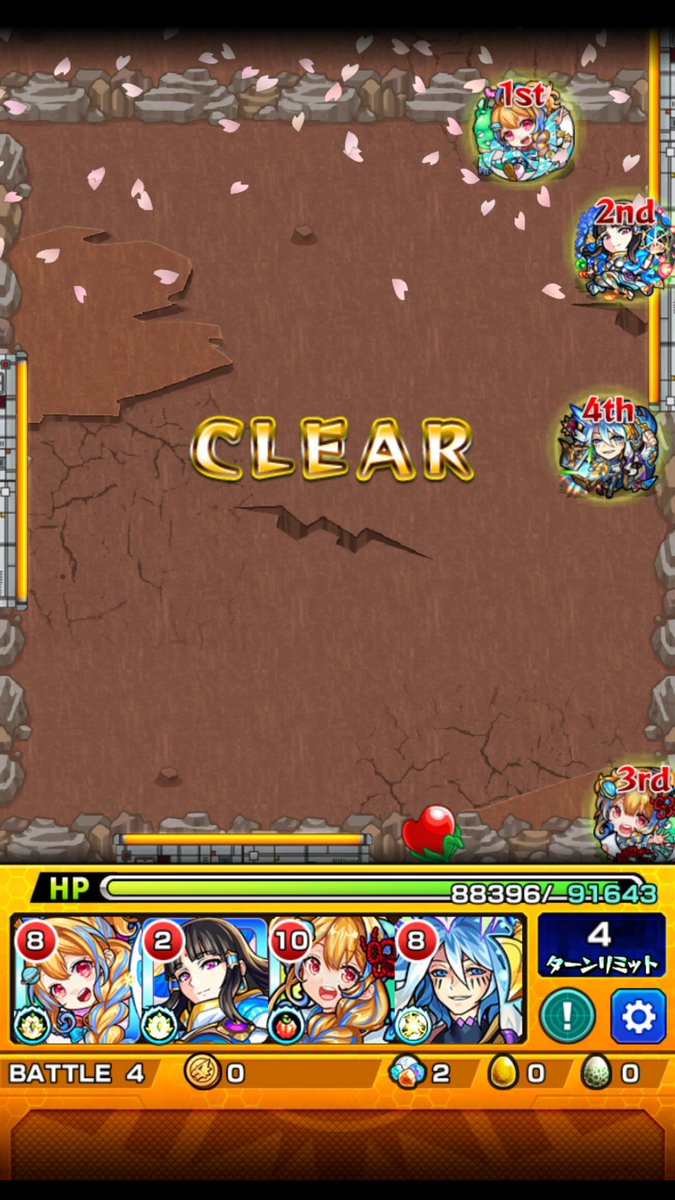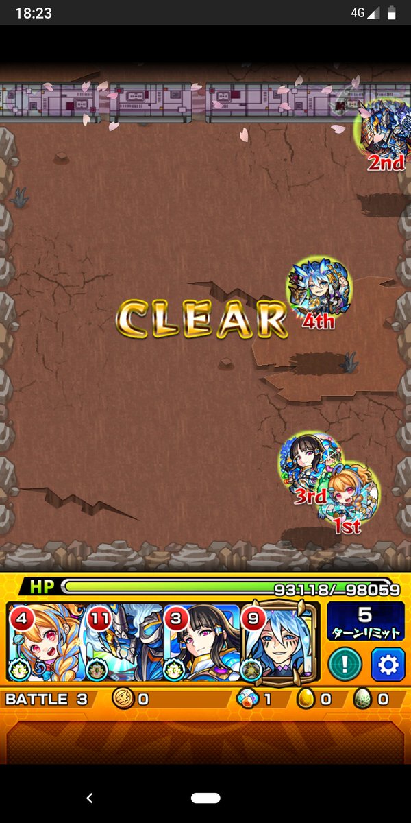 クエ4は光属性を3体以上でクリア。クエ5は魔人キラーと魔封じ持ち以外のキャラでクリア。どっちも面倒くさかった!クエ4は、また最後にホミ吸は爆発するし、クエ5は火属性キラー持ちで頑張りました!今回もオーブと降神玉ゲットです pic.twitter.com/BMcWSNg7w2