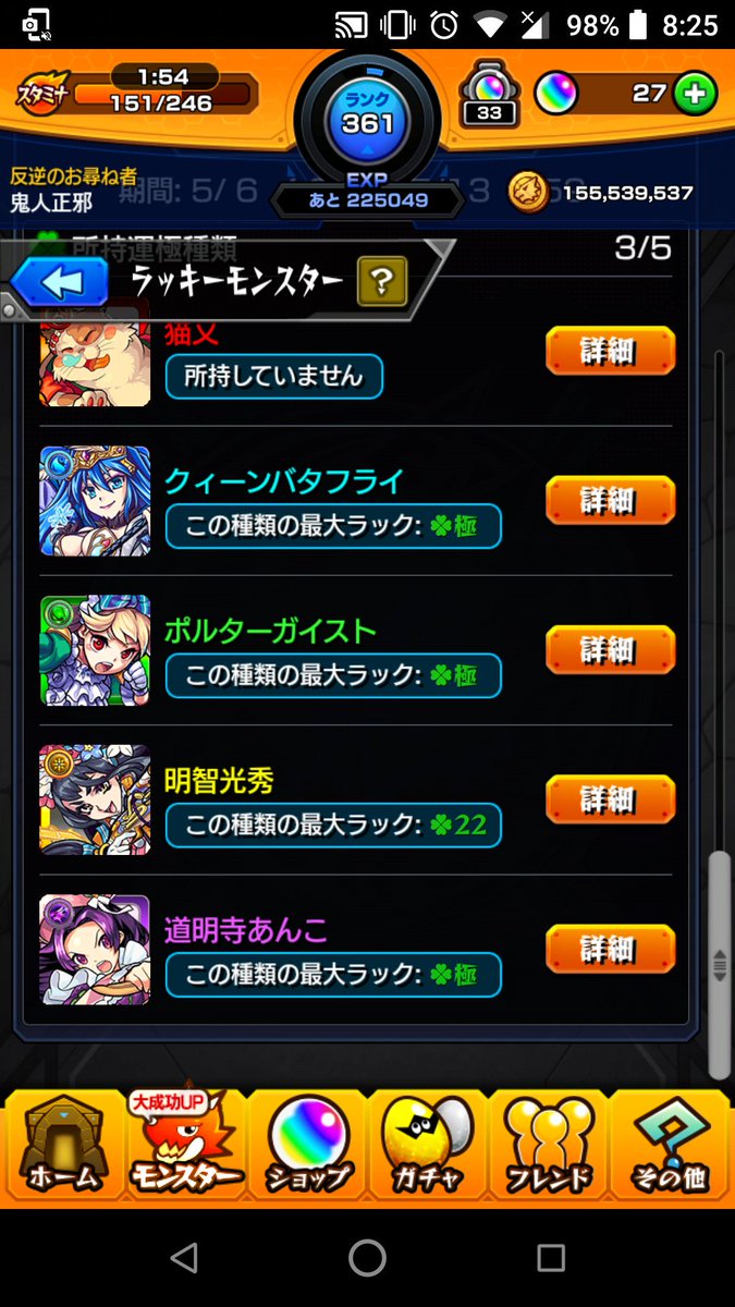 ただ来週のラッキーモンスター運極1体しかいないから今のうちに作らないと