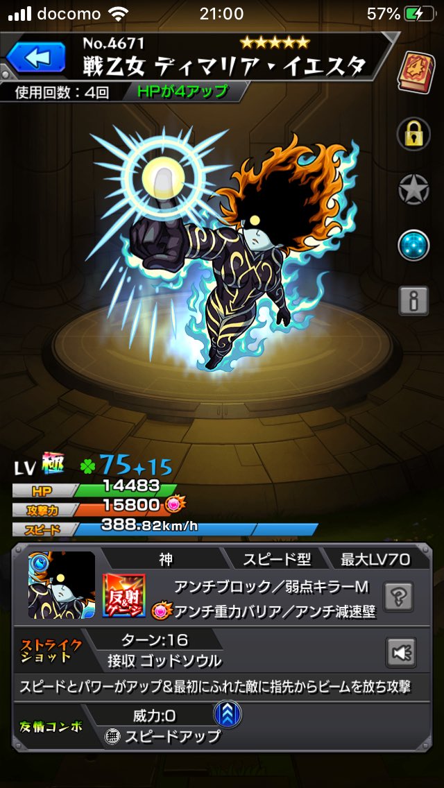 ディマリア(☆4-5)を轟絶モラルで試運転。加速的にはAngely Divaの代用で充分行ける気がするし、今後モラルの日はモンスポットでラック+10のパワスポあるかもなぁ pic.twitter.com/JZisN60Aro