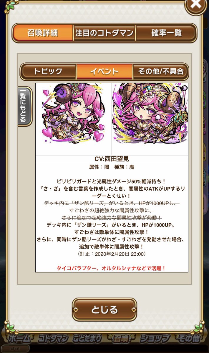 @kotodaman_pr G「今回は申し訳ないのじゃ😇せめてもの償いで虹玉300個とコトノメラ300体で許してほしいのじゃ😇あっ、これは対象者の事じゃよ😇」って解釈でよろしいでしょうか?